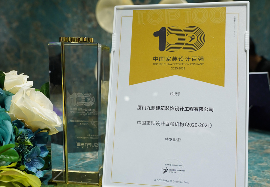 廈門九鼎裝飾榮獲“中國家裝百強設(shè)計機構(gòu)”